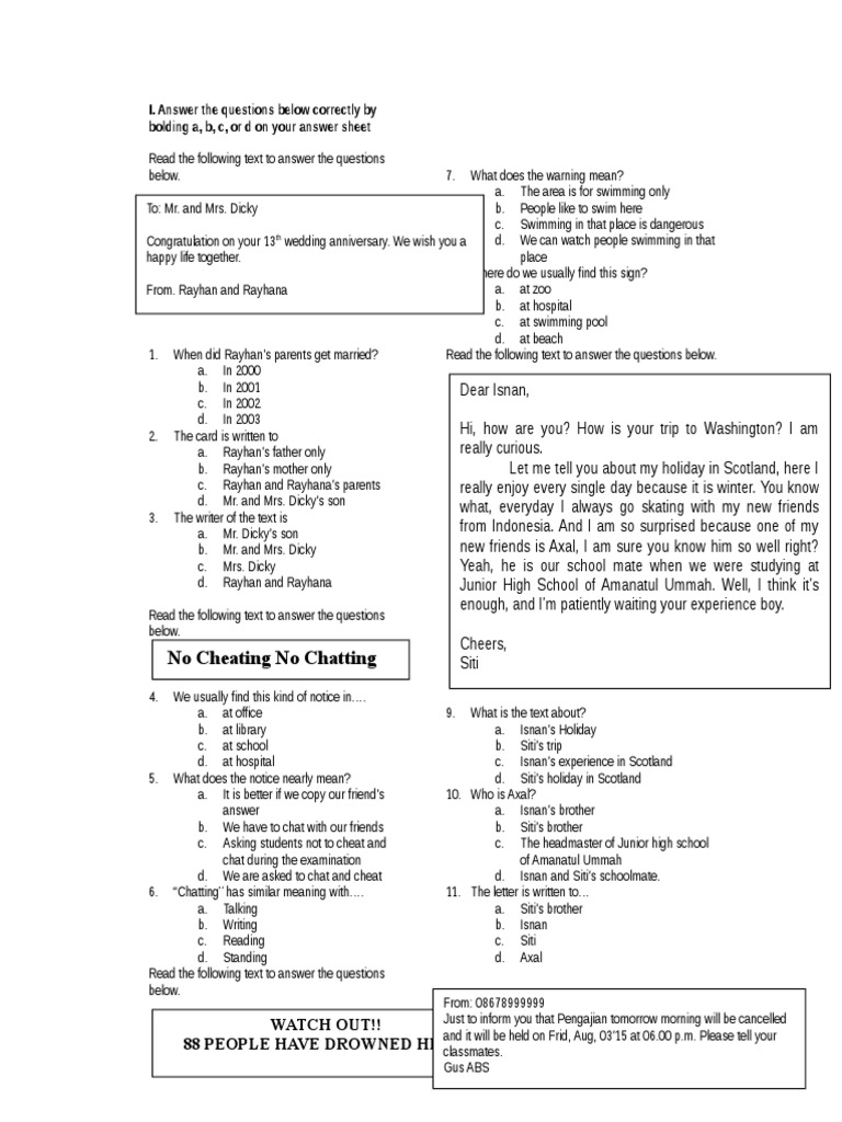 Frasa a hand di sini jangan diartikan secara harfiah. Itulah latihan online soal uts bahasa inggris kelas 8 semester genap yang dapat kami bagikan pada kesempatan kali ini dengan harapan semoga latihan soal persiapan uts diatas dapat bermanfaat bagi kita semua, turutama bagi siapapun yang ingin meningkatkan kemampuan dalam memahami. Topic chapter 1 it's english time! Soal uas/pas ini bisa anda gunaka sebagai referensi dalam belajar untuk mempersiapkan diri dalam menghadapi uas/pas tahun pelajaran 2019/2020.