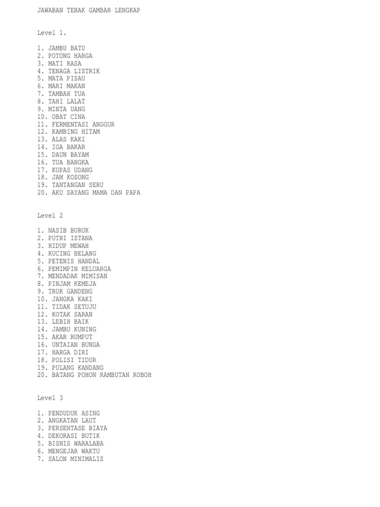Kunci jawaban tebak gambar level 5 (lima) update terbaru beserta gambarnya untuk android dan ios semua pertanyaan dari.